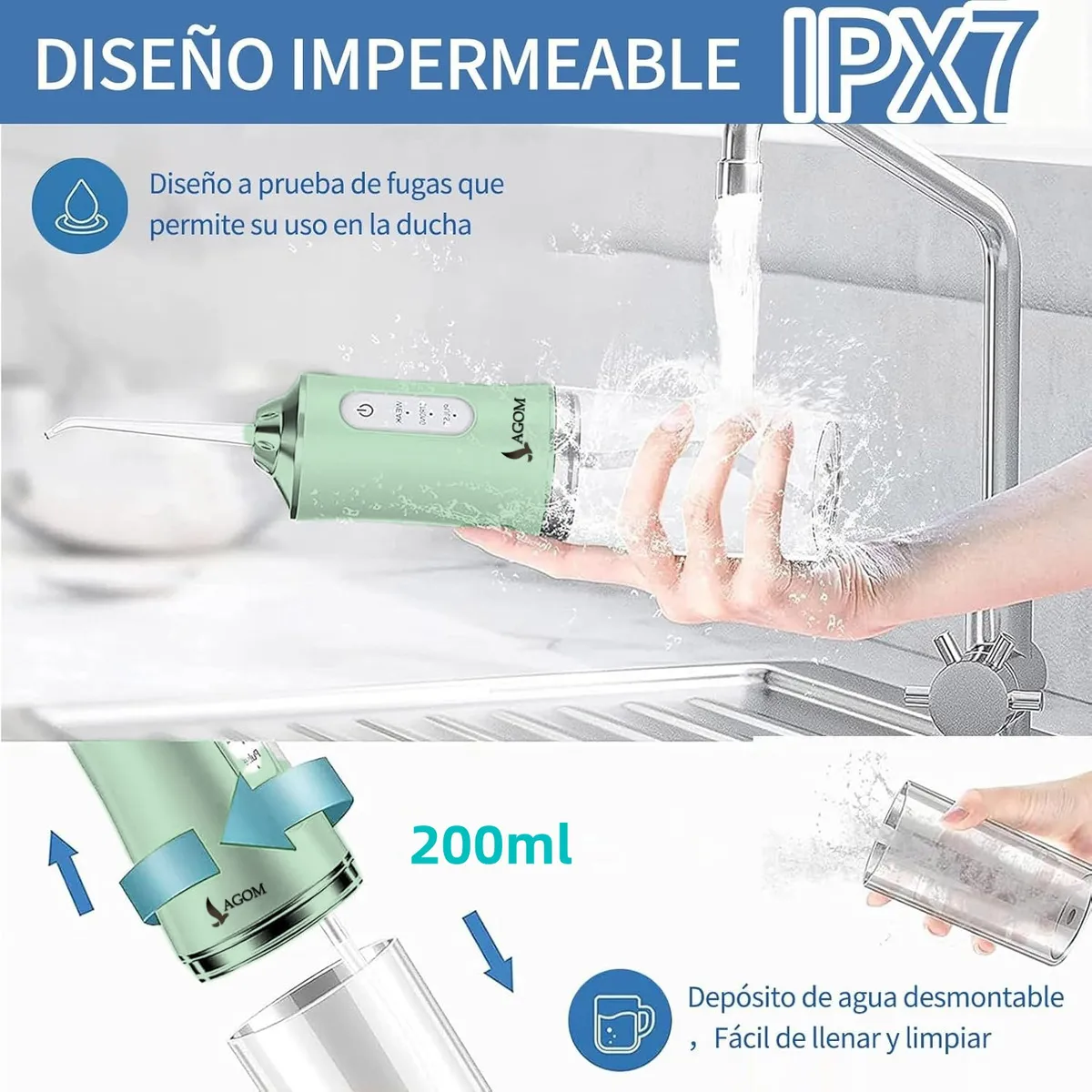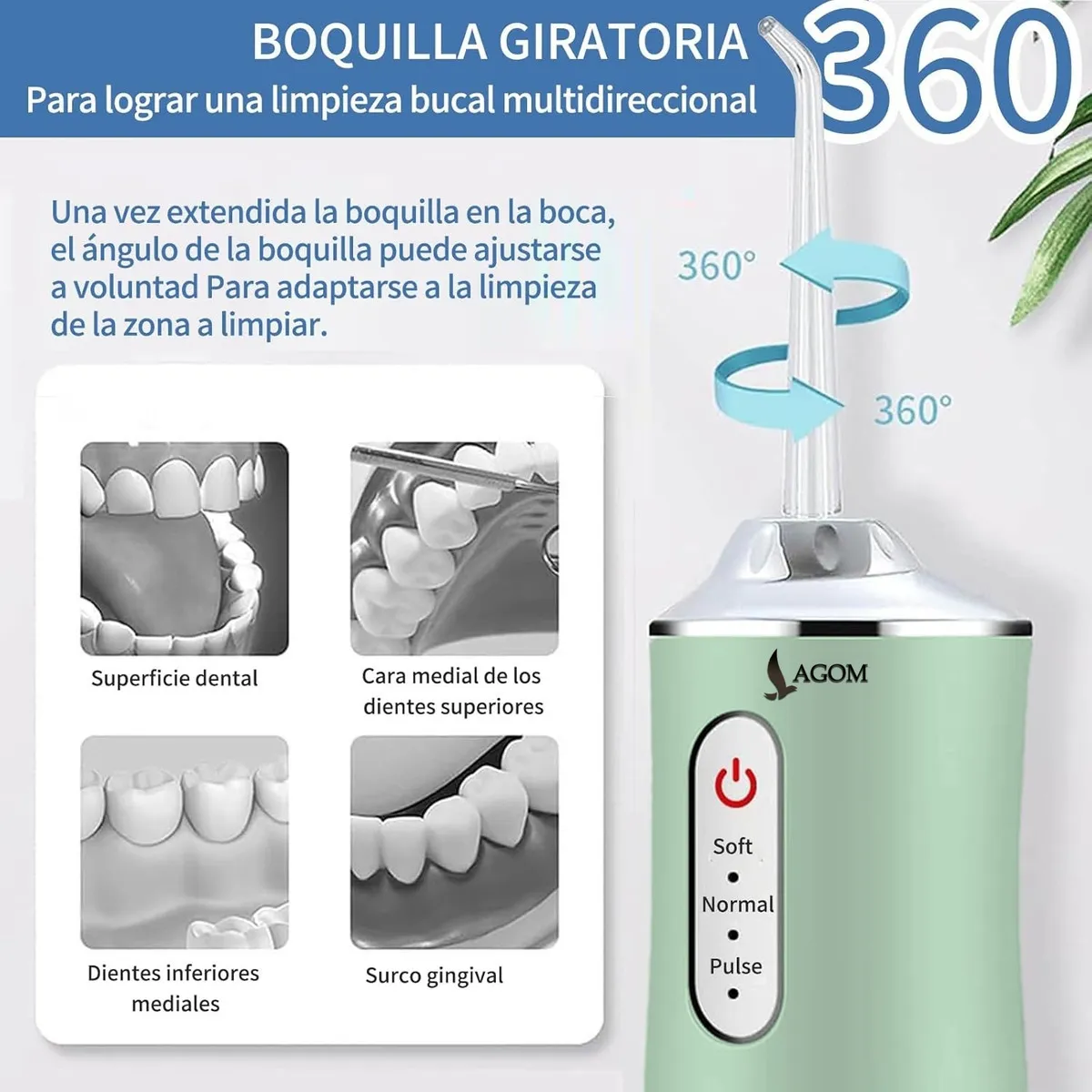 irrigador oral inalámbrico portátil está equipado con un potente motor que proporciona 40-160 PSI de fuerte presión de agua, generando 1600 enjuagues profundos por minuto, eliminar oral oculto profundo, masajeando eficazmente las encías y mejorando la circulación sanguínea. Este potente irrigador bucal dental puede resolver y prevenir eficazmente una variedad de problemas como encías sangrantes placa, mal aliento, ortodoncia y caries dental.