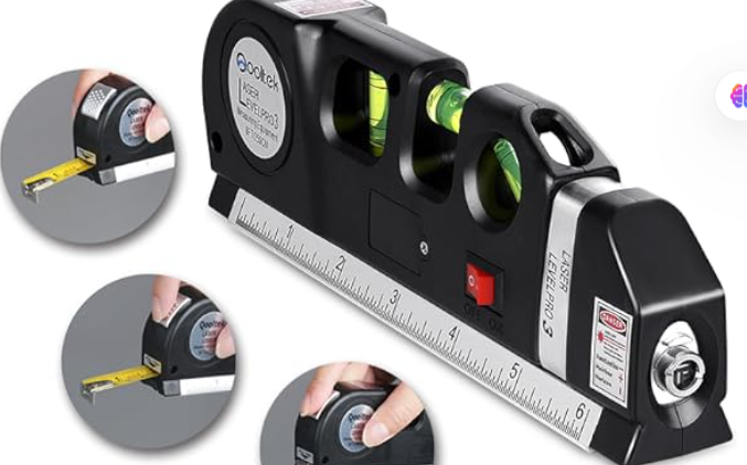 Nivel Láser con Cinta Métrica y Triple Burbuja de Precisión
